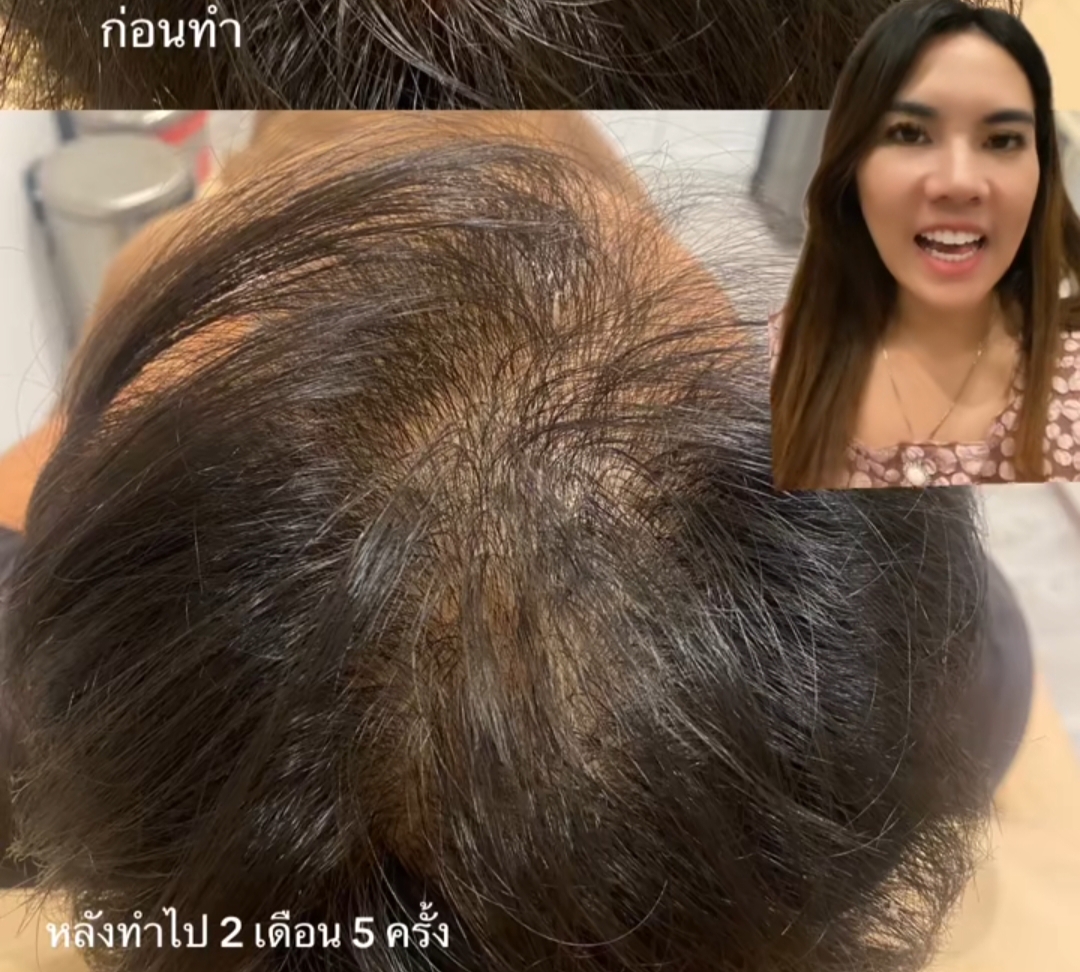 รีวิว PRP ผม เปรียบเทียบก่อนทำและหลังทำไป 2 เดือน 5 ครั้ง ผลลัพธ์เป็นที่น่าพอใจมาก คลินิกเวชกรรม หมอแพรว-หมอโบ นครศรีธรรมราช
