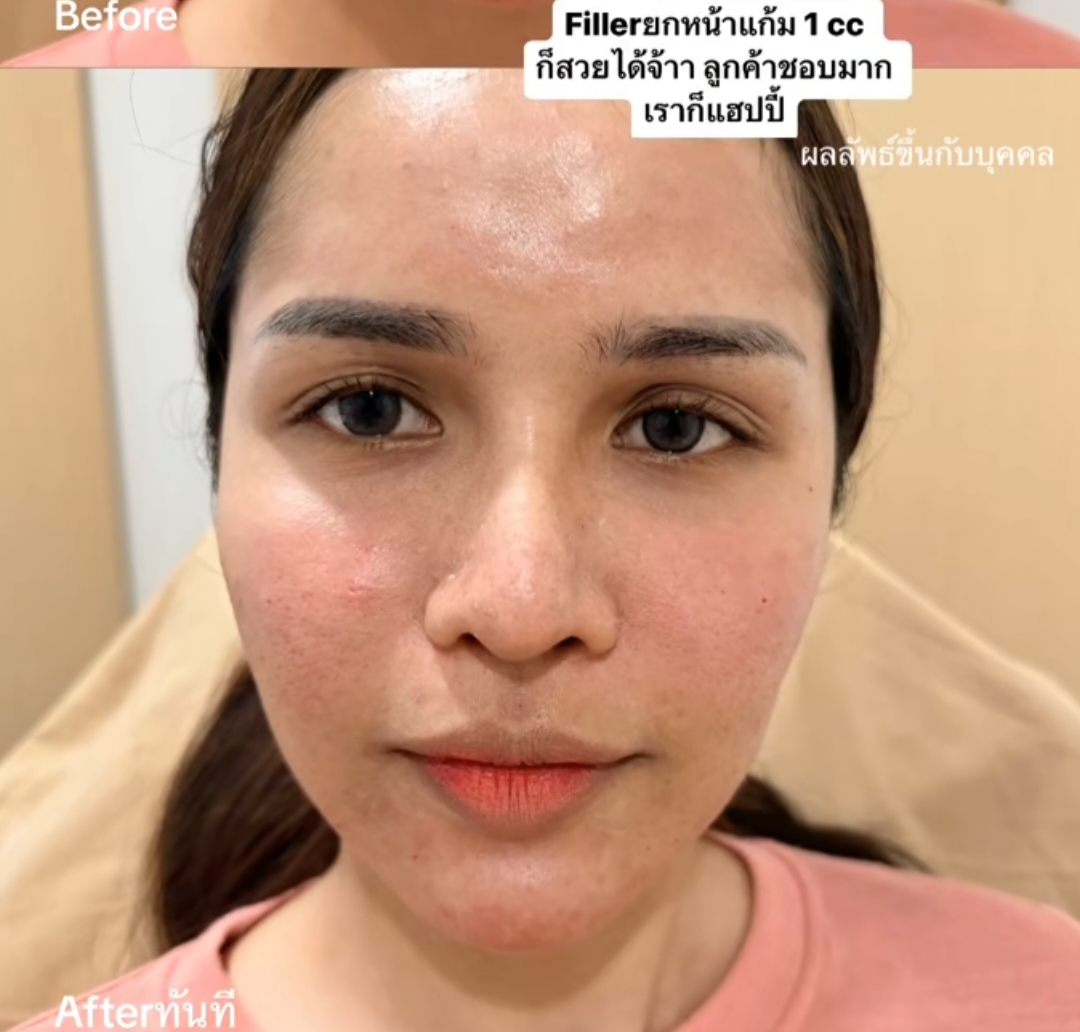 รีวิวฟีลเลอร์ยกเอ็นหน้าแก้ม เปรียบเทียบก่อนและหลังฉีด Filler ยกหน้าแก้ม 1 cc ทันที ก็สวยได้จ้าา ลูกค้าชอบมากเราก็แฮปปี้ คลินิกเวชกรรม หมอแพรว-หมอโบ คลินิกเสริมความงาม นครศรีธรรมราช