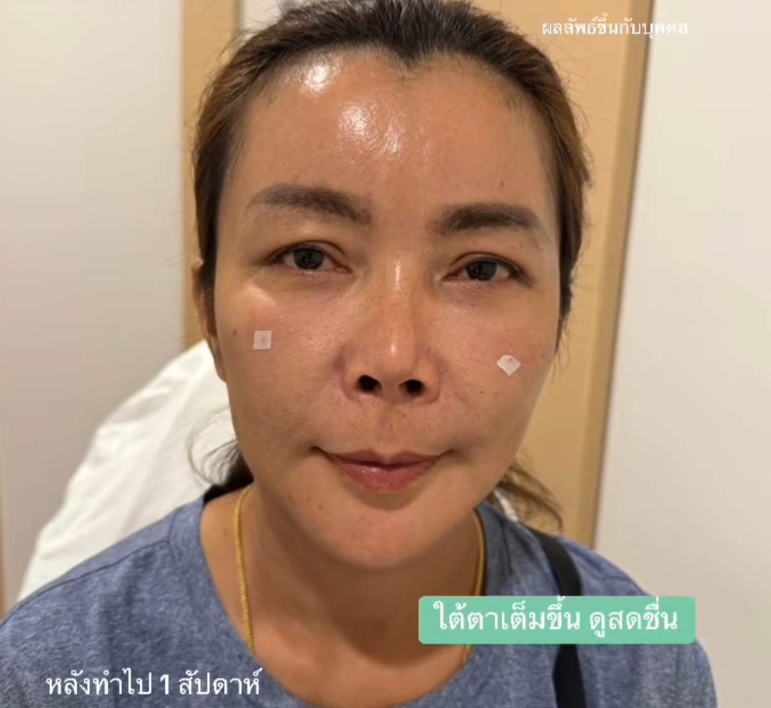 รีวิวฉีดฟีลเลอร์ใต้ตา เปรียบเทียบก่อน และหลังฉีดฟีลเลอร์ใต้ตาแค่ 1 cc หลังทำไป 1 สัปดาห์ ใต้ตาเต็มขึ้น ดูสดชื่น คลินิกเวชกรรม หมอแพรว-หมอโบ คลินิกเสริมความงาม นครศรีธรรมราช